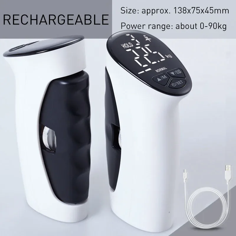 ❖ Measuring capacity: 198 lb/90 kg; weight: 0.2 lb/0.1 kg. The compact grip training device can store up to 8 user files for easy tracking of progress.